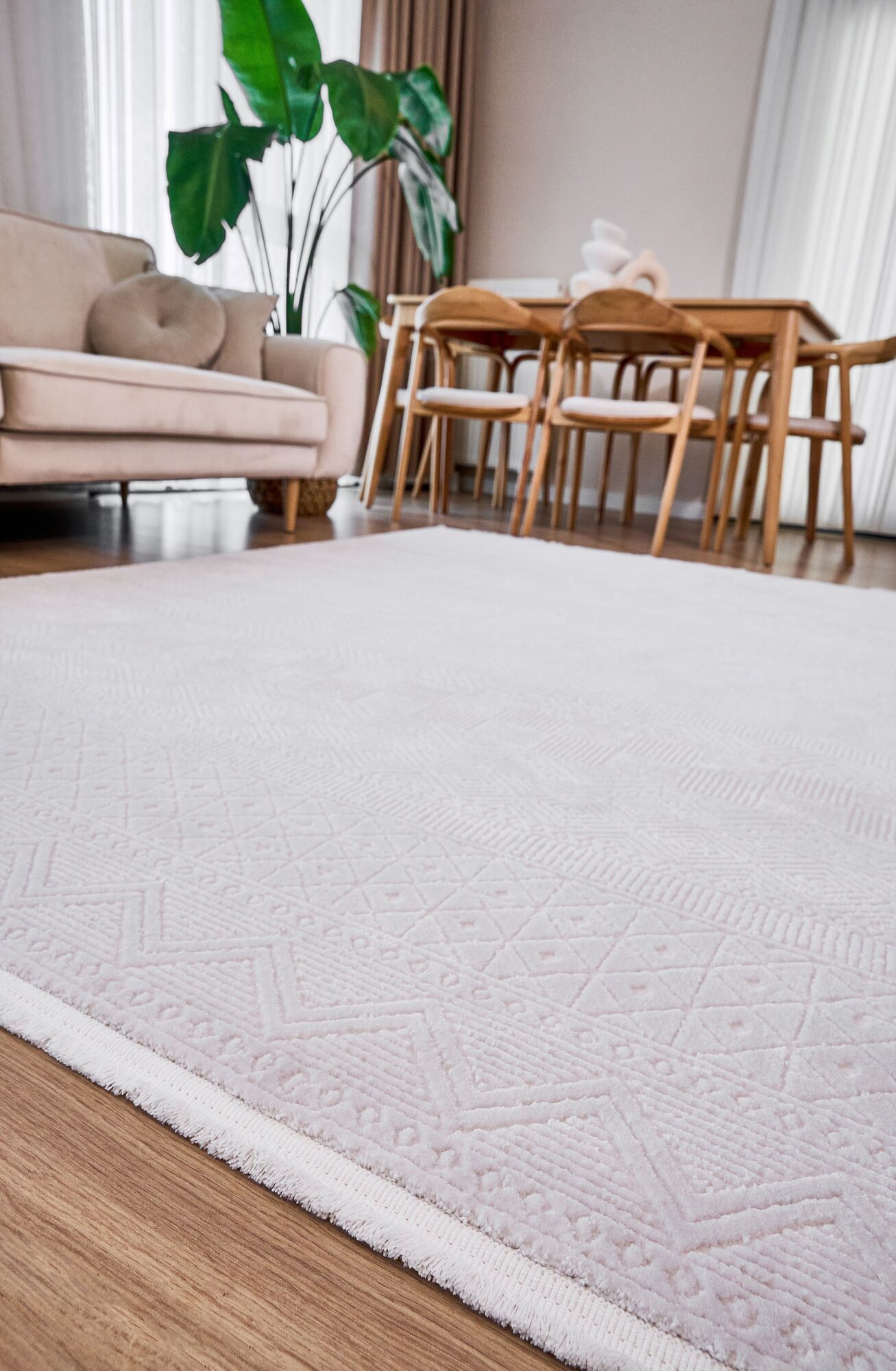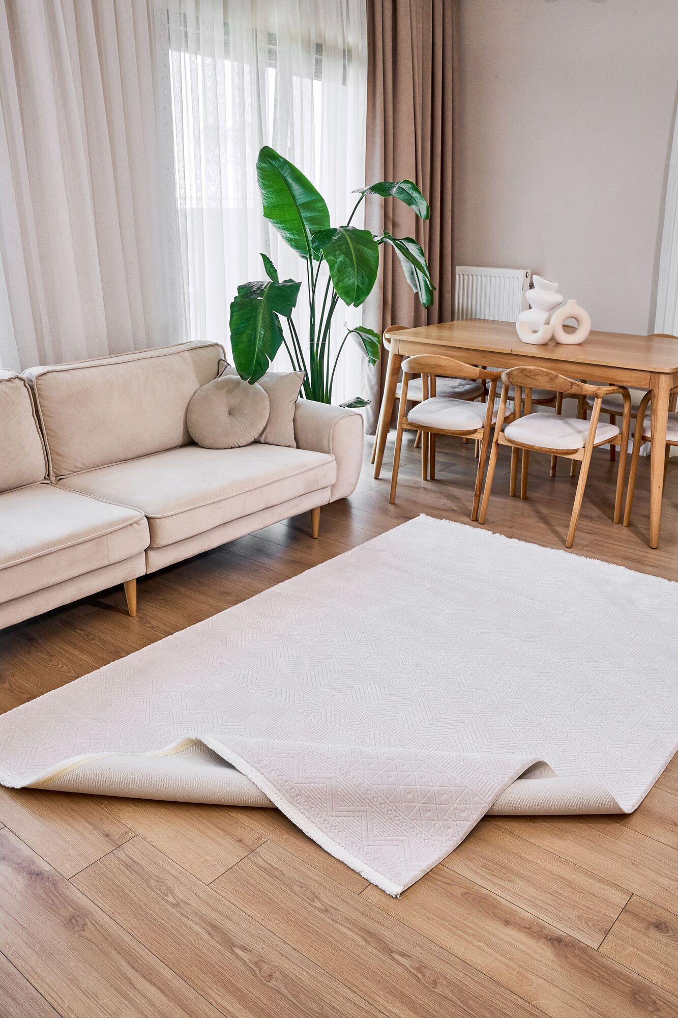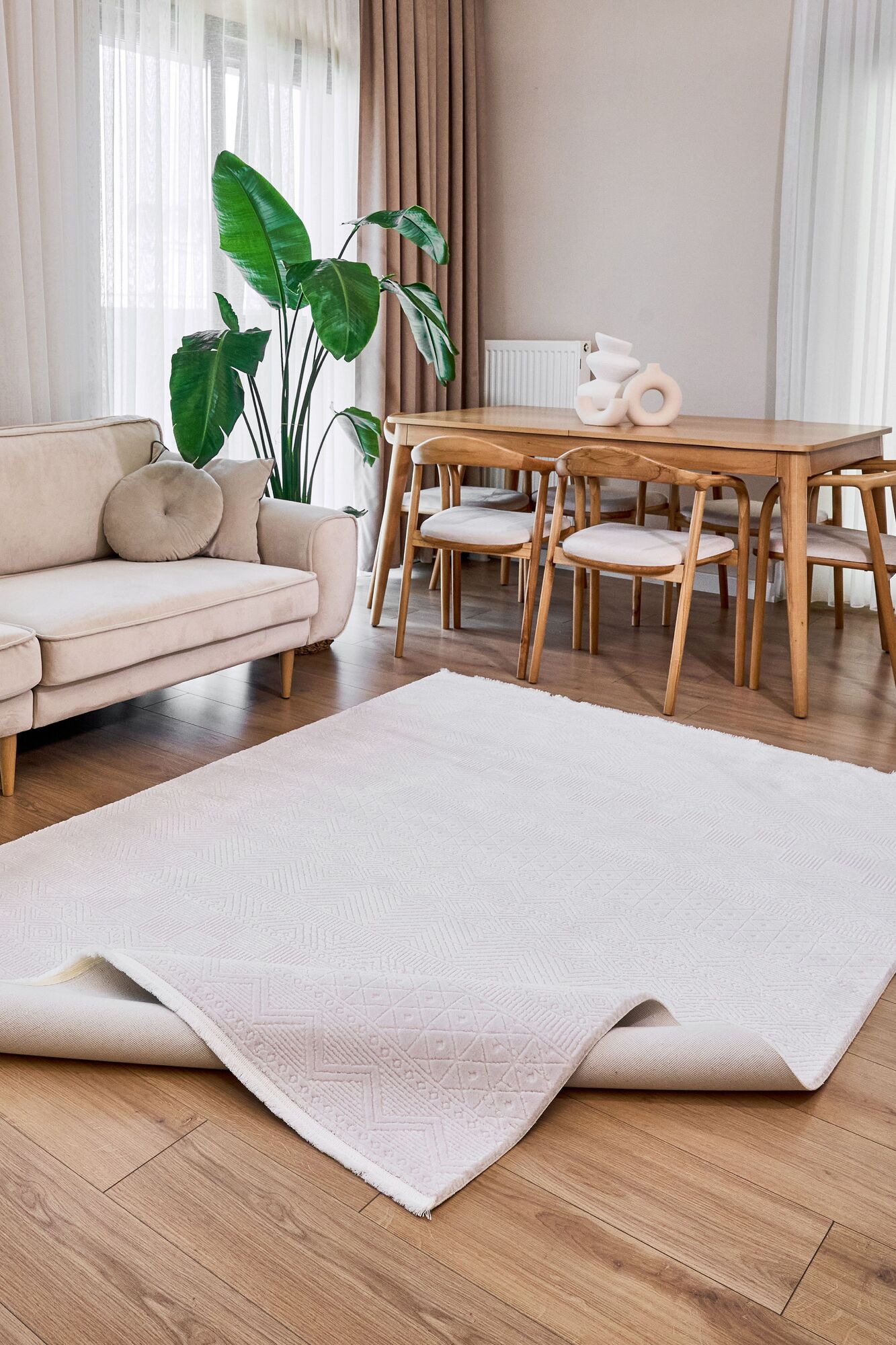 Bohem Etnik Desenli Bej İskandinav Makine Halısı Bukle Bh 04