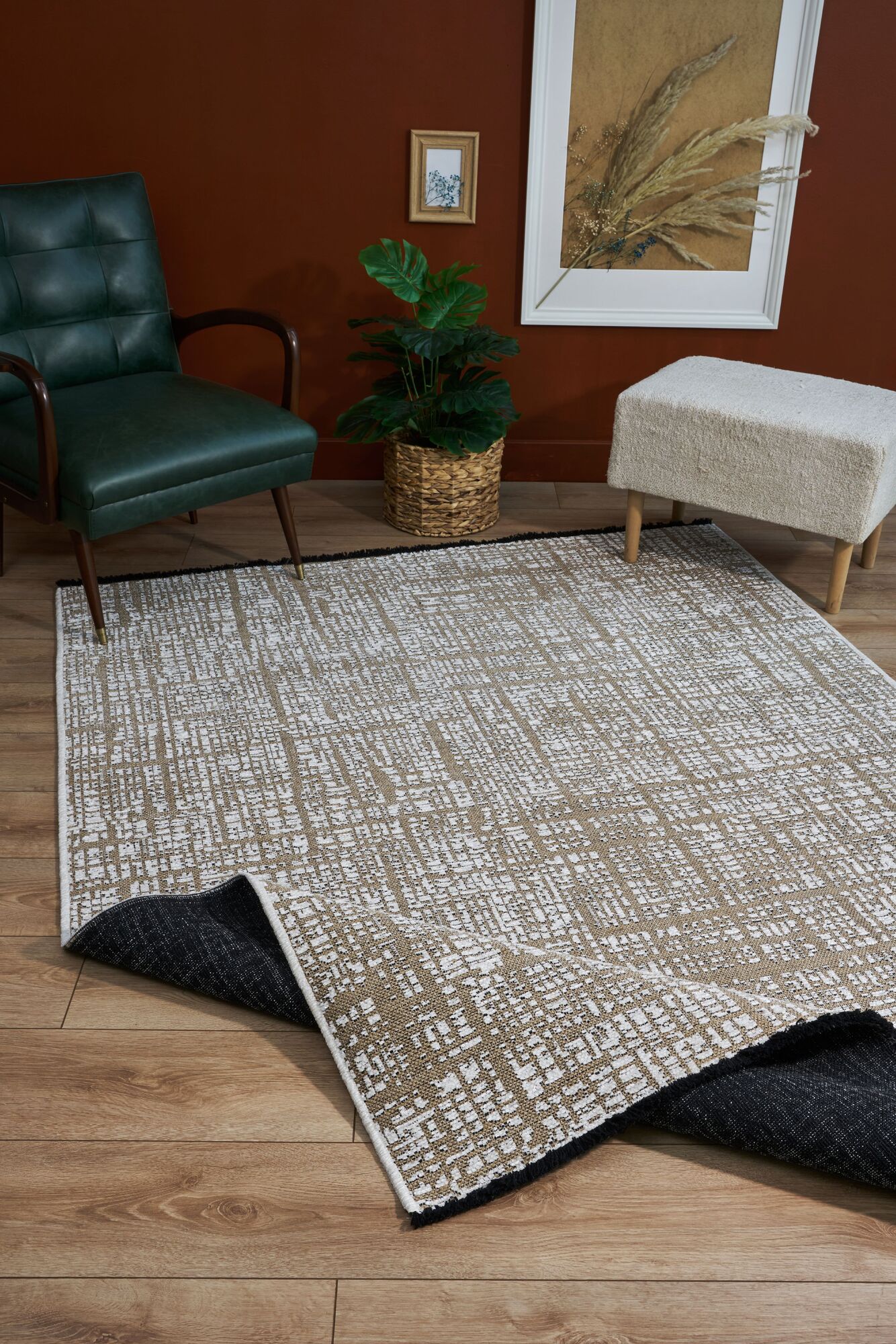 Bohem Etnik Desenli Bej İskandinav Makine Halısı Bukle Bh 04