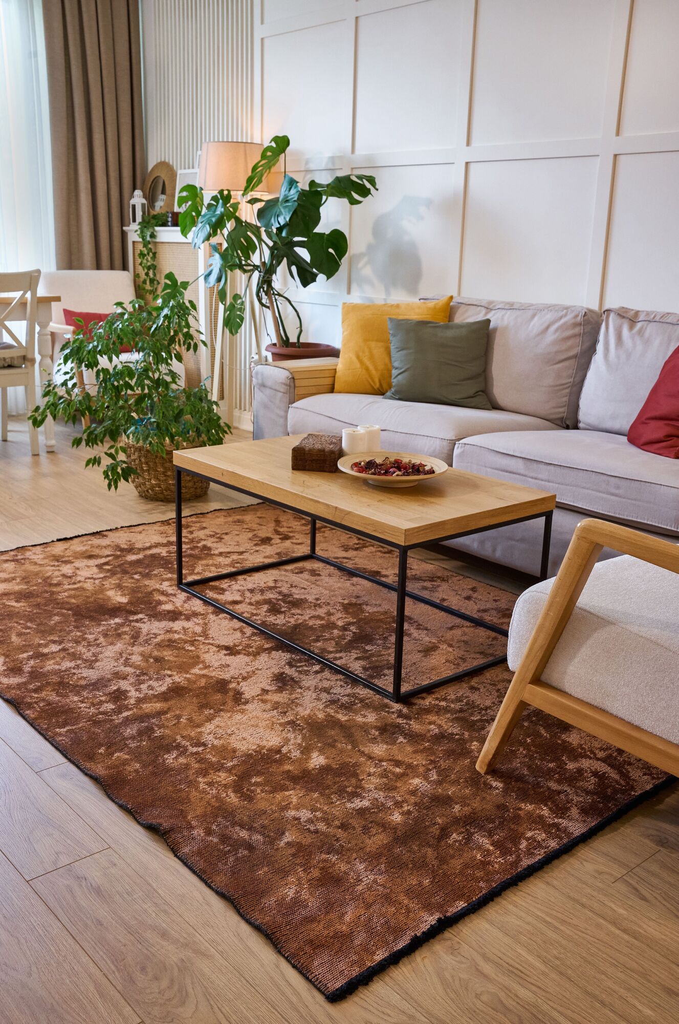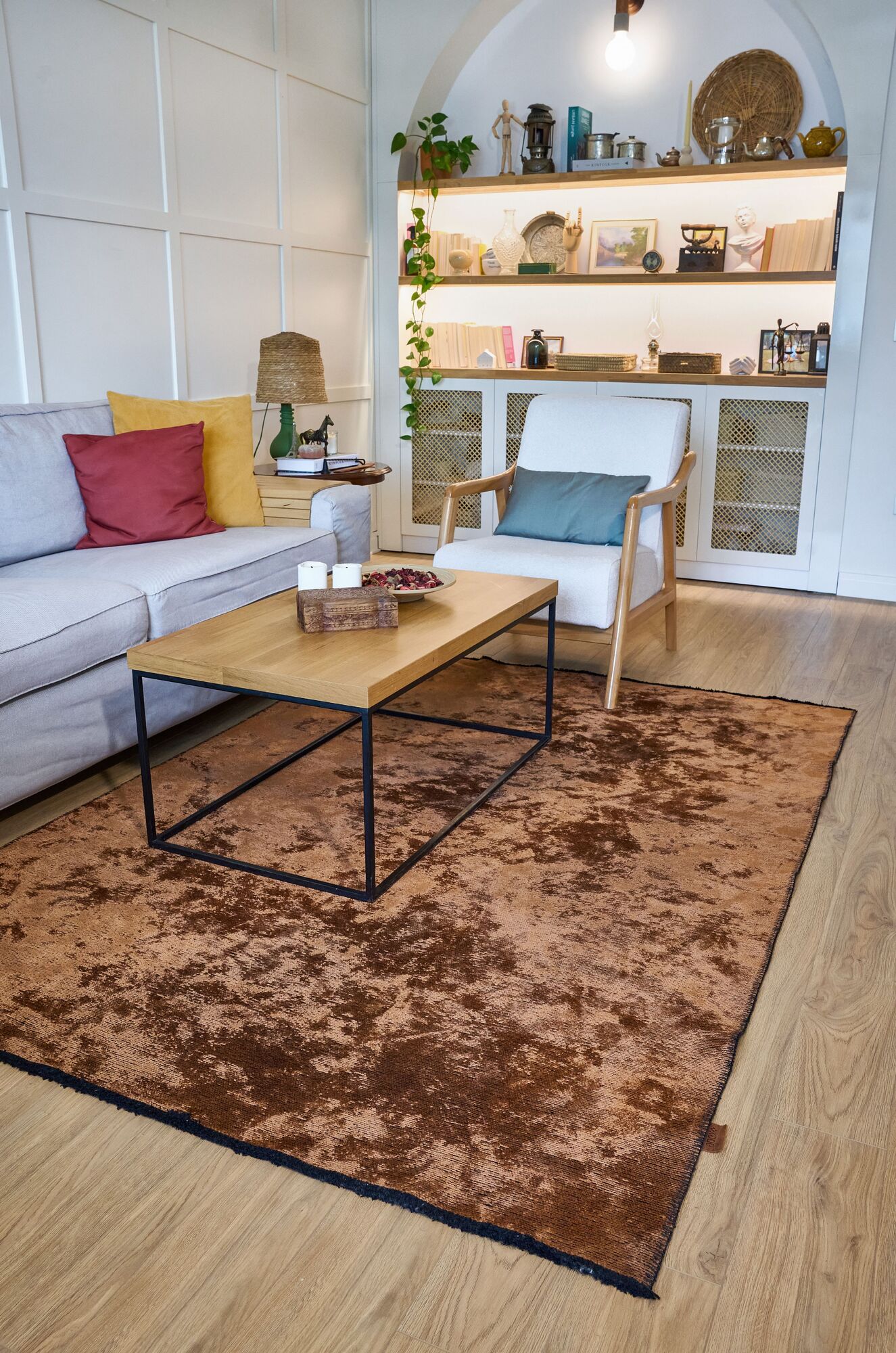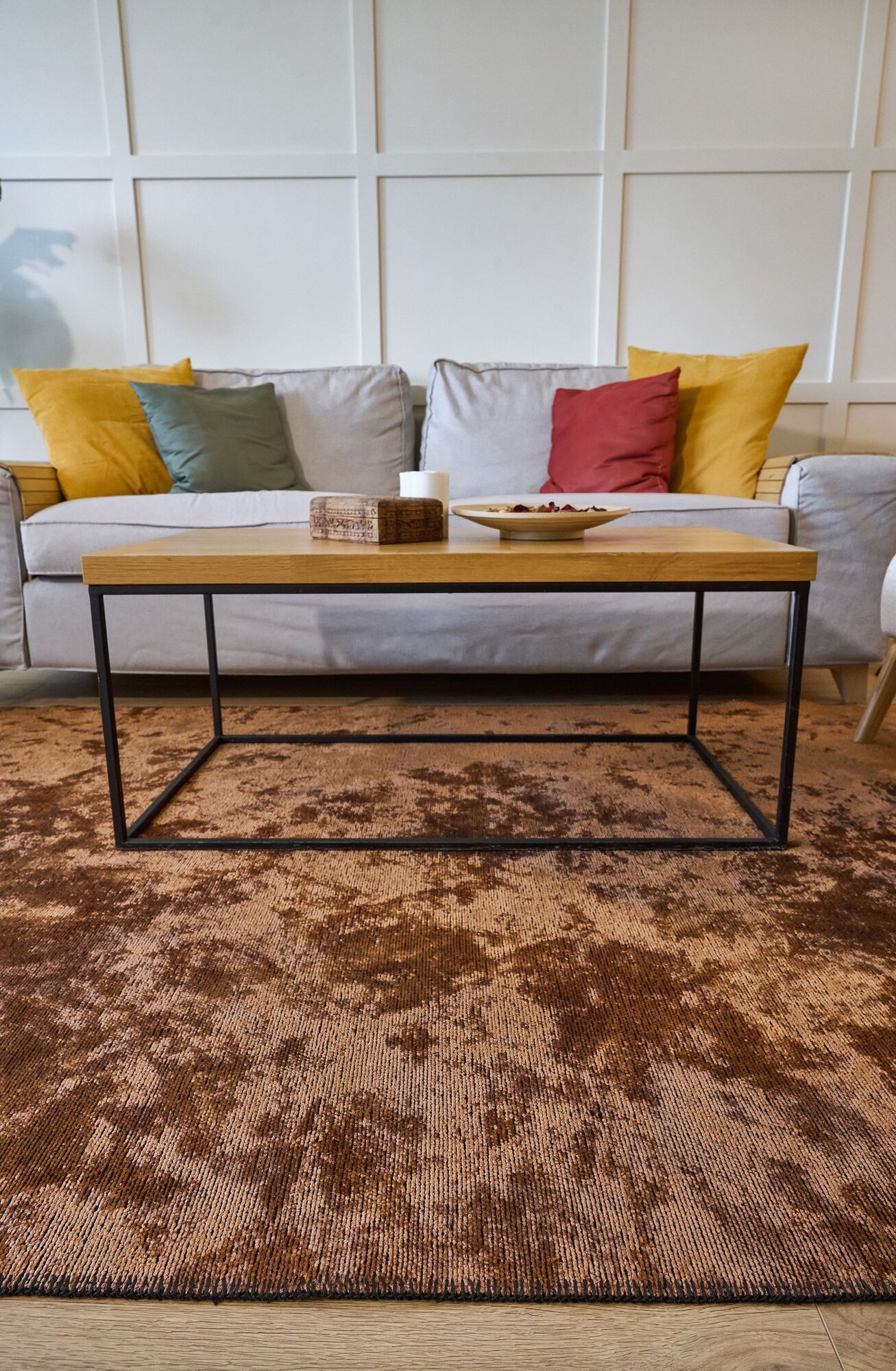 Varak Detaylı Siyah Deri Patchwork Halı