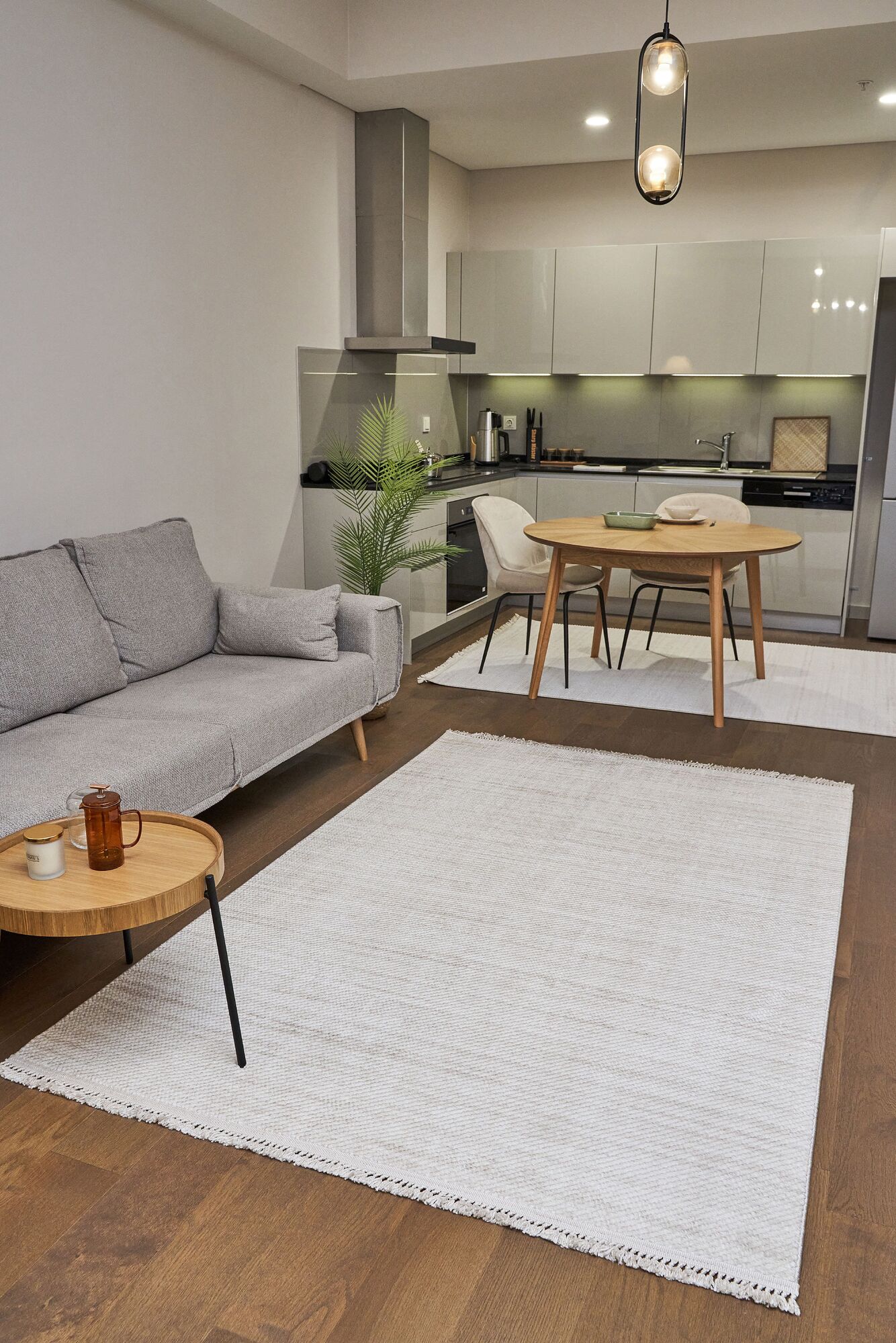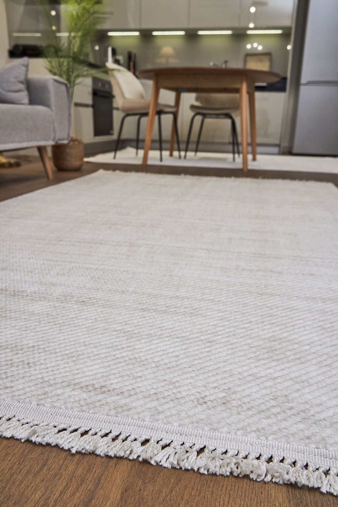 Bohem Etnik Desenli Bej İskandinav Makine Halısı Bukle Bh 04