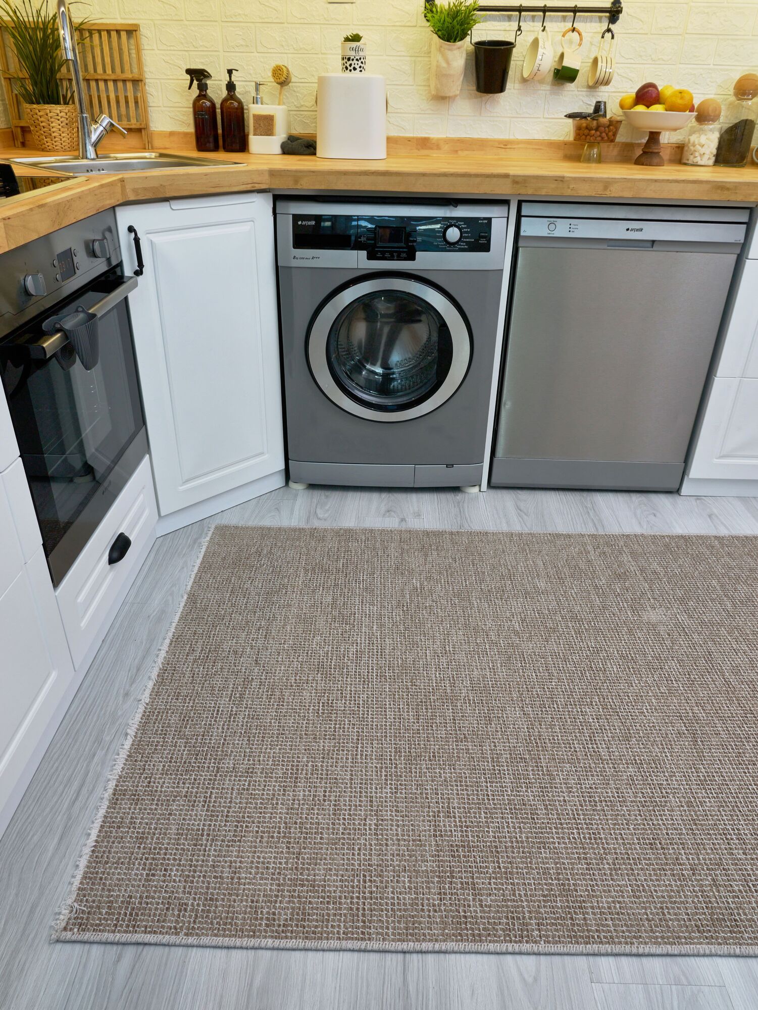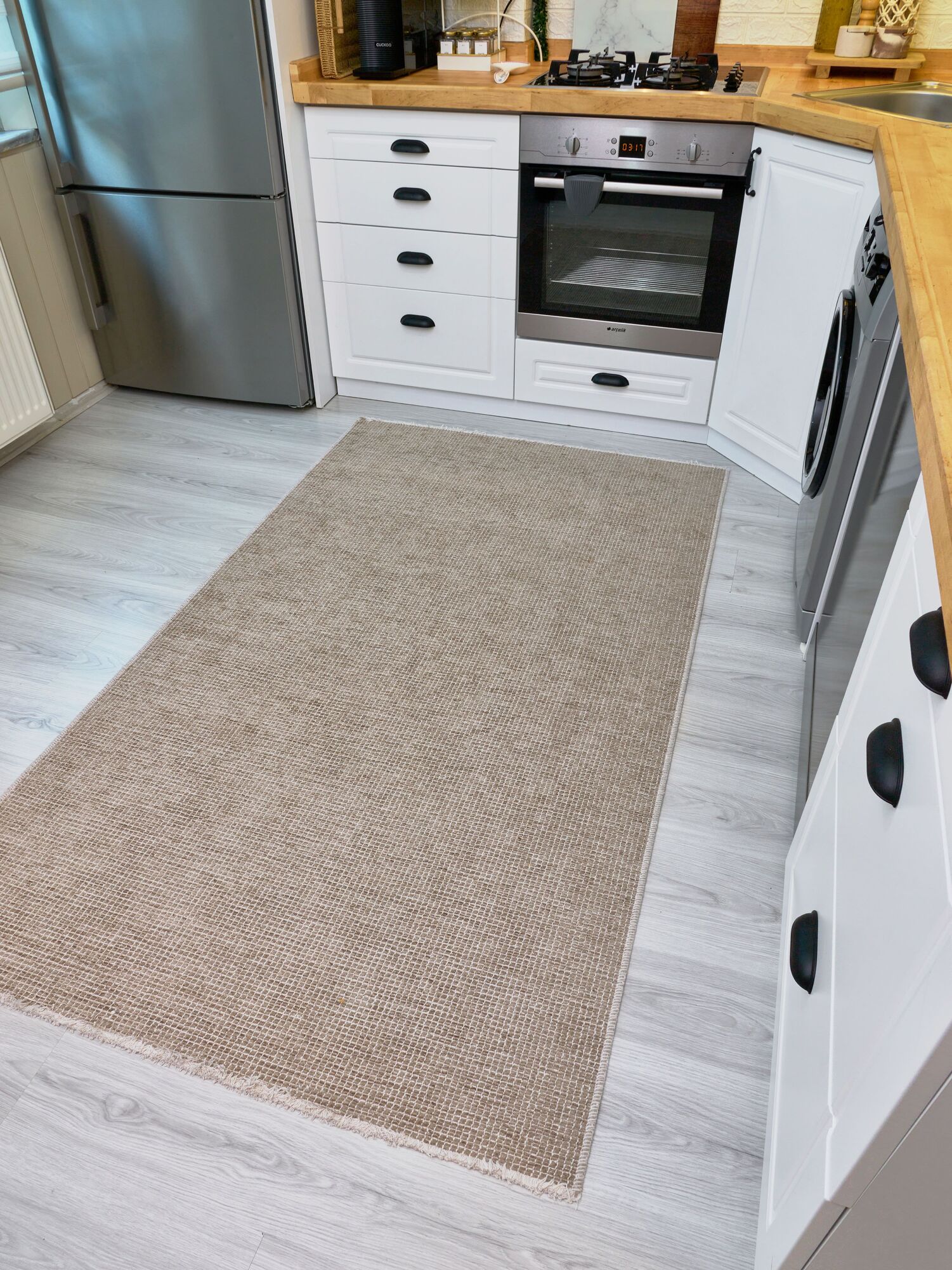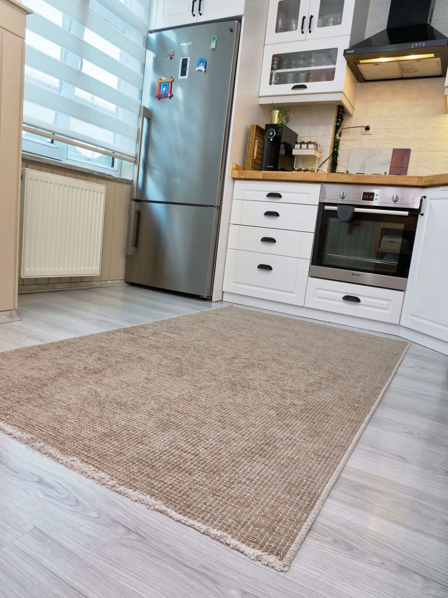 Bohem Etnik Desenli Bej İskandinav Makine Halısı Bukle Bh 04
