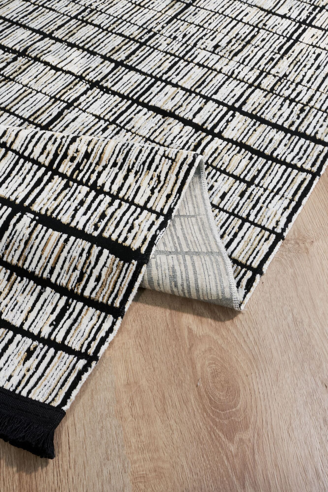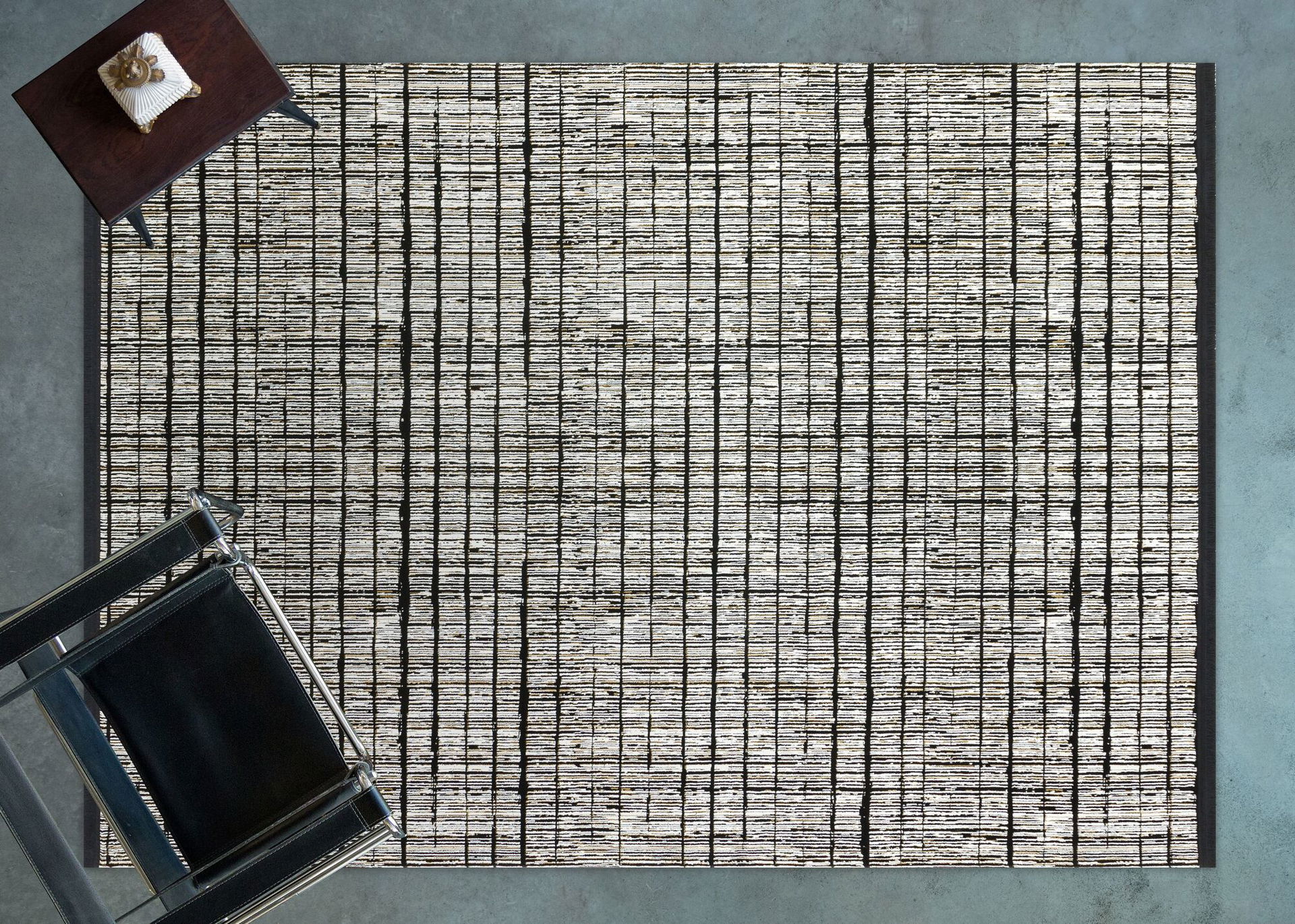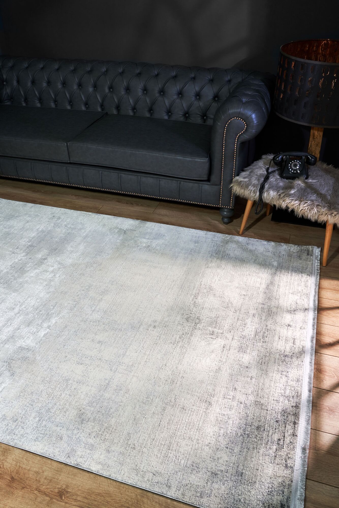 Varak Detaylı Siyah Deri Patchwork Halı