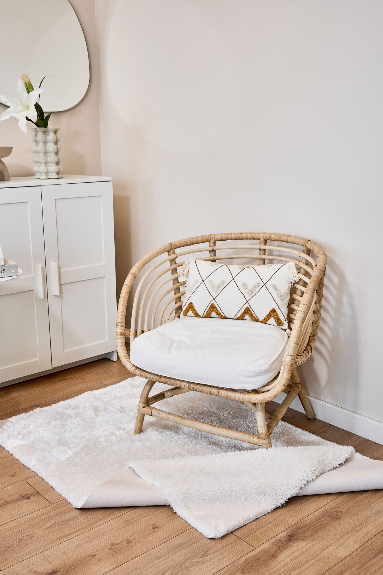 Bohem Etnik Desenli Bej İskandinav Makine Halısı Bukle Bh 04