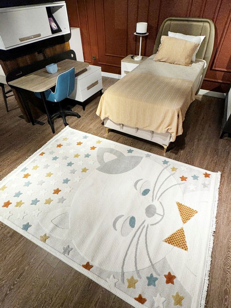 Canlı desenleriyle çocuk odalarına neşe katan bu halı, yalnızca şık görünümüyle değil, aynı zamanda fonksiyonel yapısıyla da dikkat çeker. Sağlam ve kaliteli malzemeden üretilmiş olup uzun ömürlü kullanım vadeder. Her zaman temiz ve düzenli bir görünüm isteyen ebeveynler için ideal bir seçimdir.