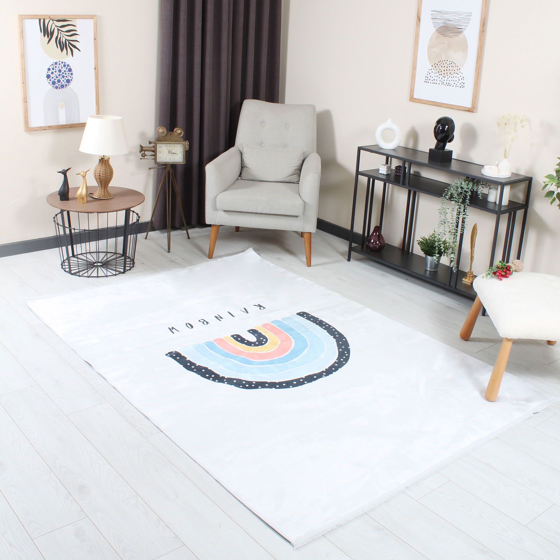 Rainbow Renkli Çocuk Halısı Yumuşak Dokulu Yıkanabilir Halı